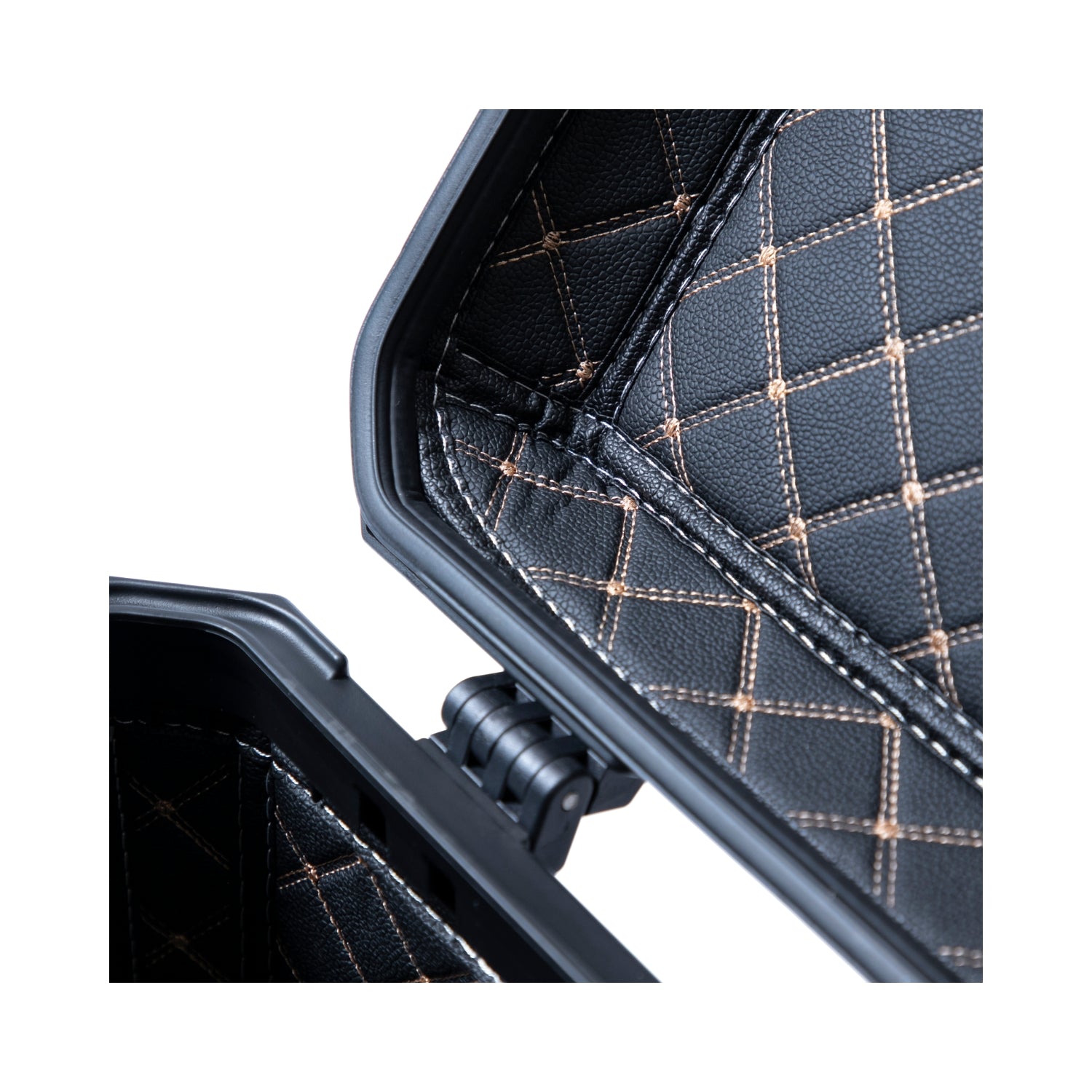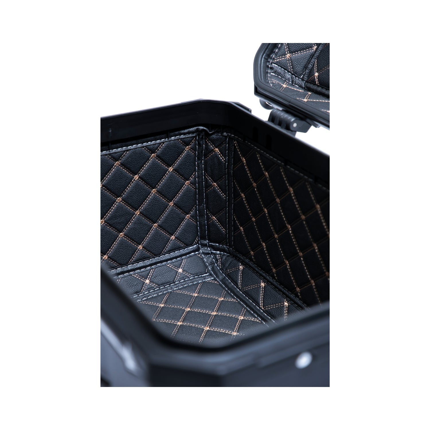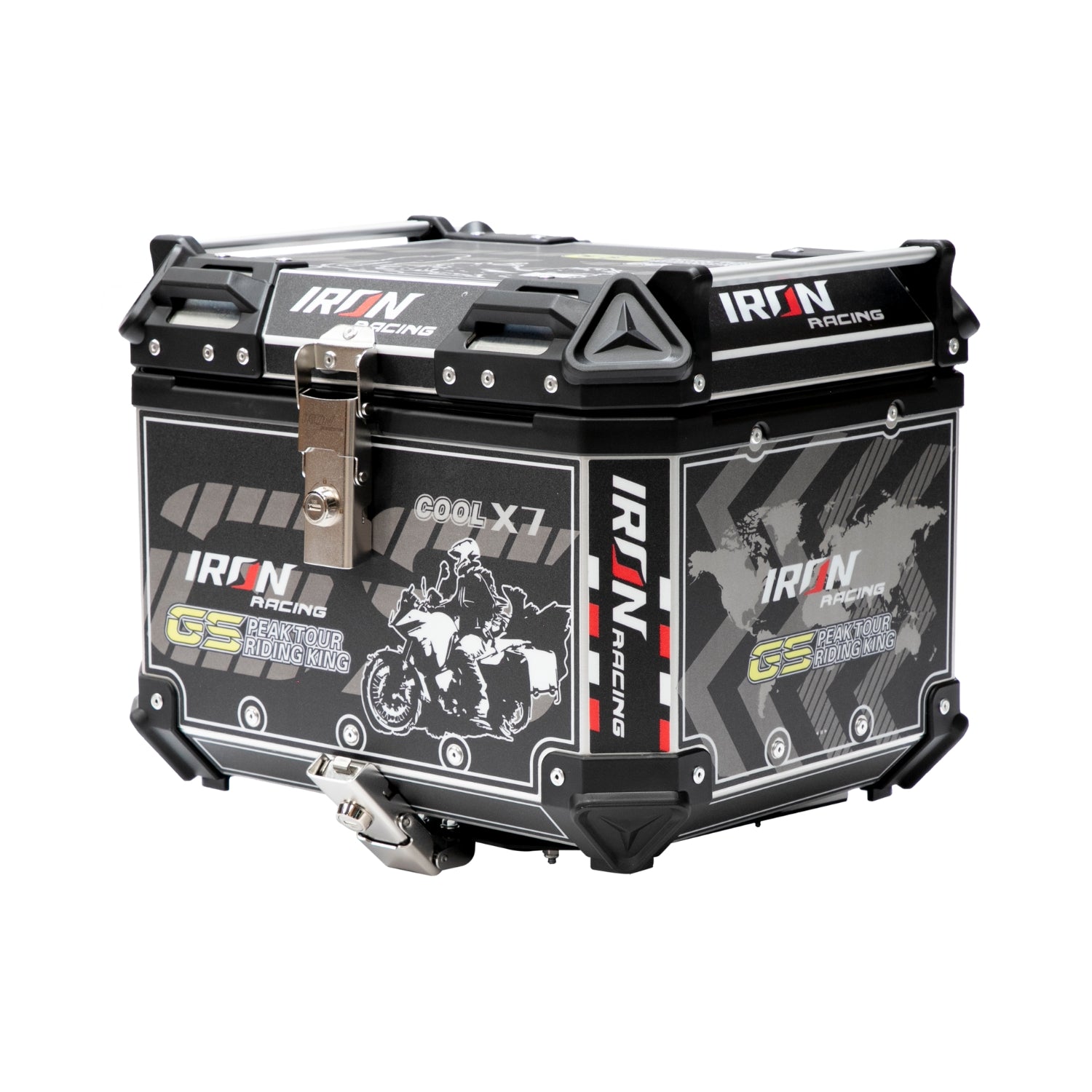 Con el maletero portaequipaje de Lujo Iron Racing GS Cool de 45 litros de la marca Iron Racing tendrás la combinación de resistencia y lujo exclusivo para un motero aventurero, gracias a que se encuentra en su exterior fabricado en 100% aluminio reforzado altamente resistente a las diferentes condiciones climáticas, interior totalmente sellado se encuentra recubierto de cuero para proteger tu casco y prendas importantes.