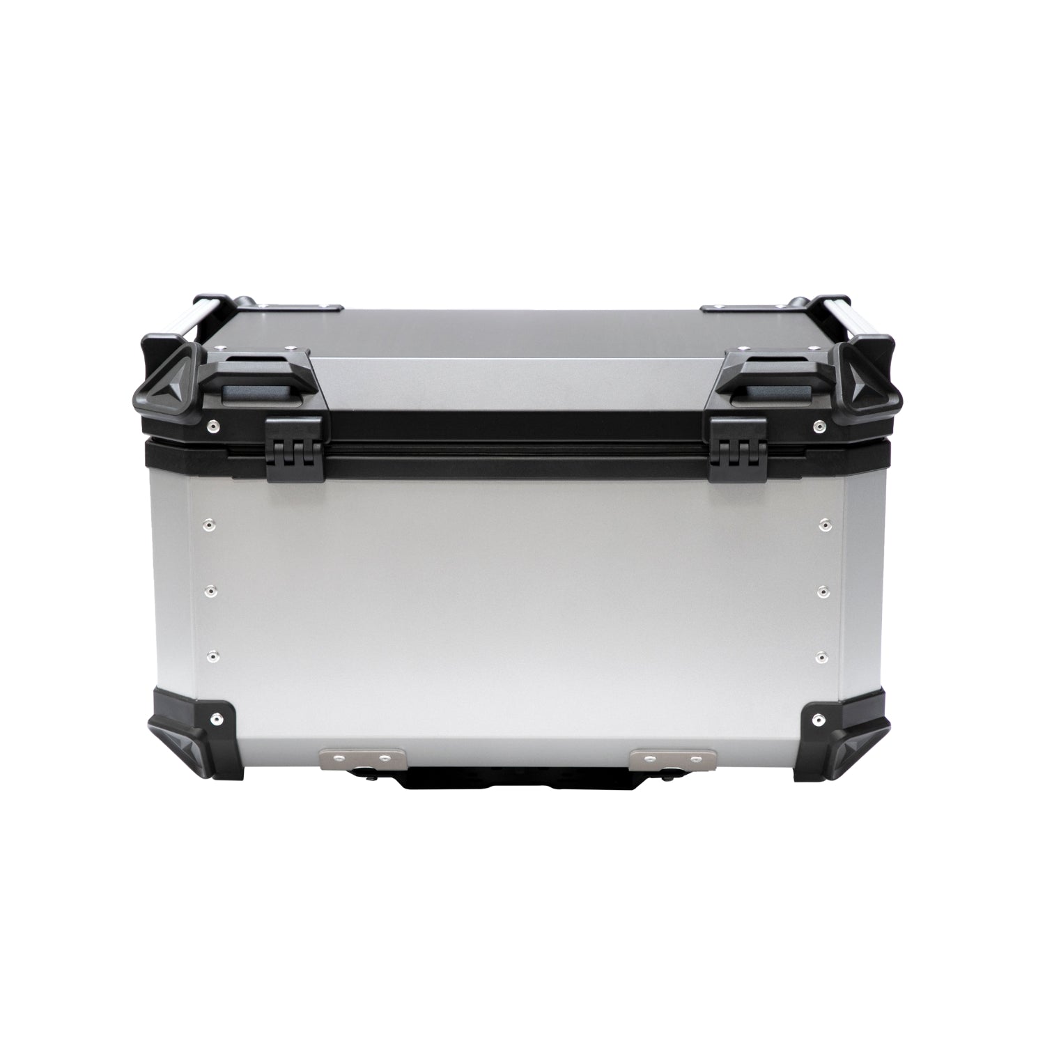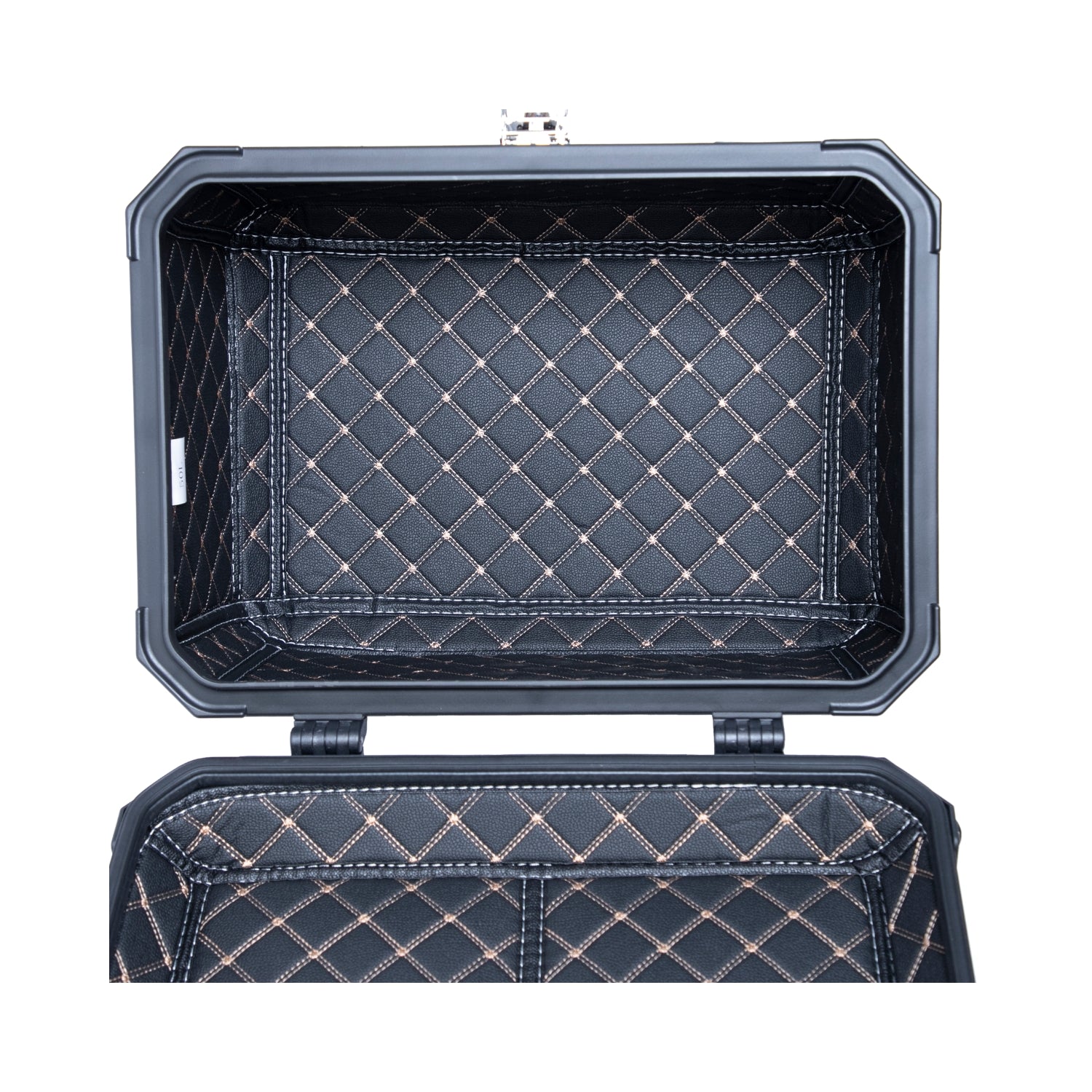 Descubre características en nuestro maletero de lujo de Iron Racing X Silver de 65 litros como acabados de alta calidad, detalles cromados y sistemas de cierre seguro se combinan para ofrecer una experiencia de conducción excepcional, encuentra en su exterior fabricado en 100% aluminio reforzado altamente resistente a las diferentes condiciones climáticas, interior totalmente sellado se encuentra recubierto de cuero para proteger tu casco y prendas importantes, Combinación de estilo inigualable, espacio generoso, durabilidad y seguridad en un solo producto.