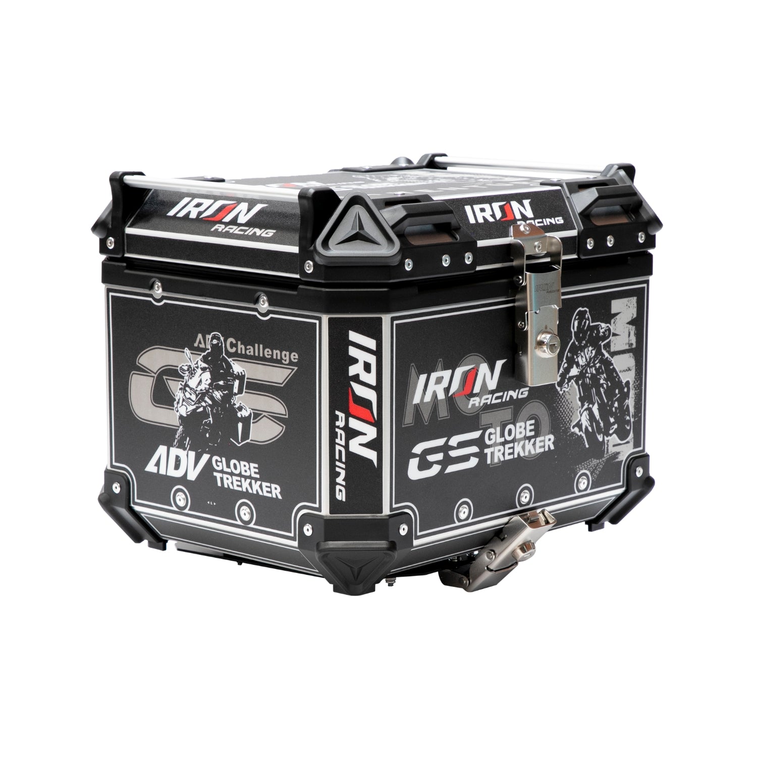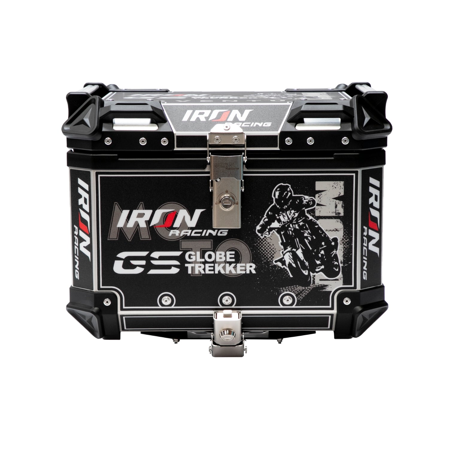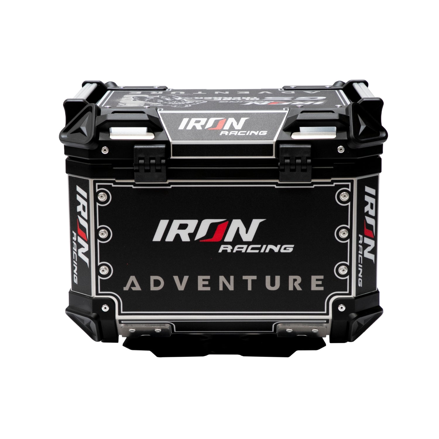Con el maletero portaequipaje de lujo Cool Black de 45 Litros de la marca Iron Racing tendrás la combinación de resistencia y lujo exclusivo para un motero aventurero, gracias a que se encuentra en su exterior fabricado en 100% aluminio reforzado altamente resistente a las diferentes condiciones climáticas, interior totalmente sellado se encuentra recubierto de cuero para proteger tu casco y prendas importantes.